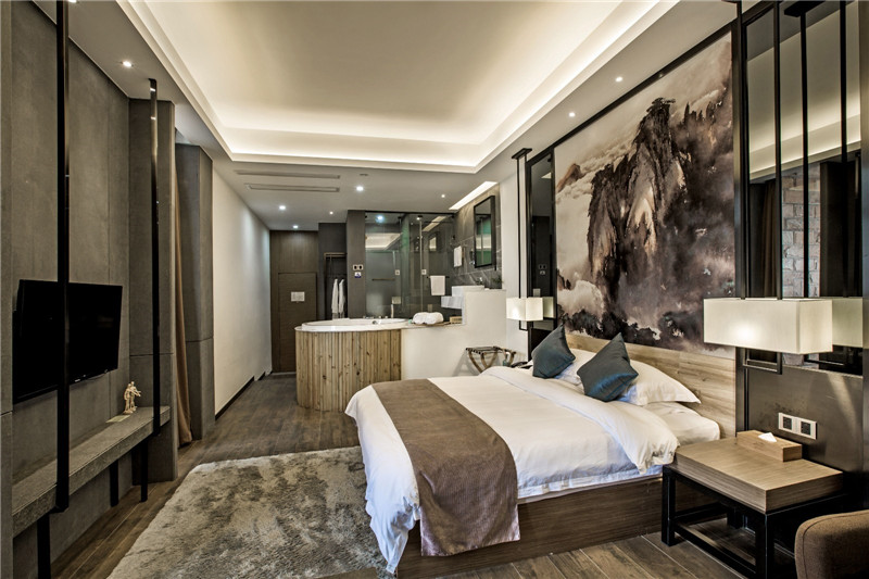 民宿酒店設(shè)計風(fēng)格方面,不主張純粹的中式或西式,而崇尚古典與現(xiàn)代的融合,傳統(tǒng)與時尚的并存,力求打造一個“混搭”的現(xiàn)代空間。在這個過程中,不同地域的文化或某一種特殊的材料可以成為靈感的來源,如竹子、茶以及九曲溪的霧都成為可選擇的元素。
