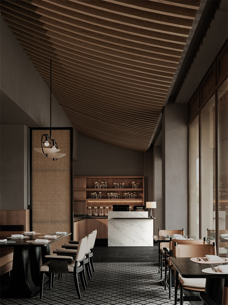 食一碗煙火,偷半日浮閑。煙火下經(jīng)年的情節(jié)故事演繹其中,留下了幾多回味和思考。日子發(fā)于新生,場(chǎng)景融于心聲,愿日新月異里用我們的慧眼發(fā)現(xiàn)生活之美,雋永恒初??臻g大量運(yùn)用穩(wěn)重木色系與質(zhì)樸的紅磚,現(xiàn)代與傳統(tǒng)元素的碰撞,歲月沉淀的韻味油然而生。大量竹編元素的運(yùn)用,將餐飲與文化交融,形成鮮明獨(dú)特的文化氣質(zhì)。獨(dú)立而有序的布局,置身其中,聞絲竹,識(shí)花香,清逸悠閑。古韻之中夾雜著恰到好處的煙火氣,更展露出慵懶閑然的日常感。