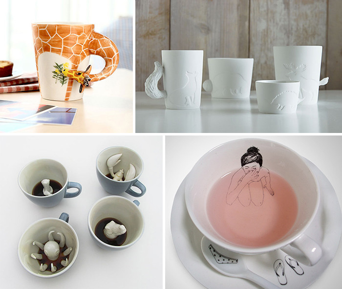 有沒有想過杯子的把手可以做多少變化呢?若是單純的在杯子表面做造型,似乎有點了無新意, 有一位設計師利用長頸鹿的概念,將長長的脖子應用在把手上,延伸做出一個優(yōu)美的彎曲線條,更不用說用尾巴來當把手了!另外,當你拿起杯子的瞬間,如果看到令人會心一笑的圖案,一定會感覺更好喝!