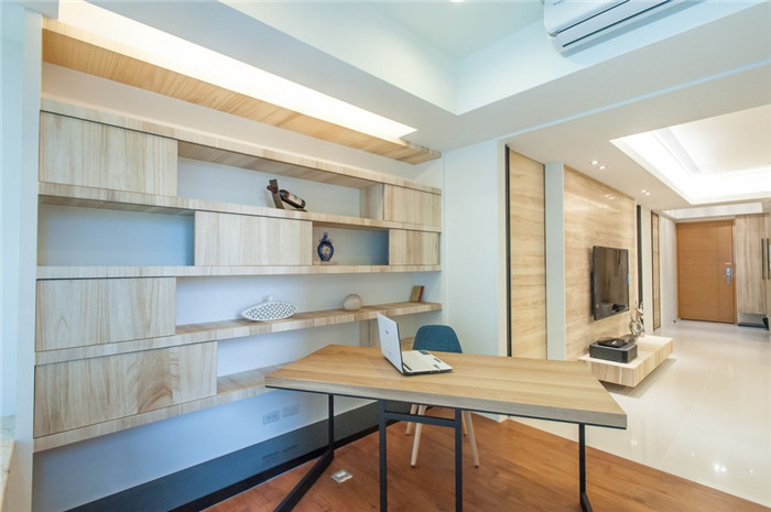 而坪數(shù)不大的格局上,設(shè)計師將廚房、臥室、書房的門都改為拉門,不但節(jié)省空間,在視覺上也有放大的效果。更為重要的是,為了長輩長久的居住規(guī)劃,設(shè)計師將整間住宅的地板都采用了無高低差的通用設(shè)計,再利用拉門串連起整個空間,隨時都能依當(dāng)下的需求和心情自如地改變空間面貌。